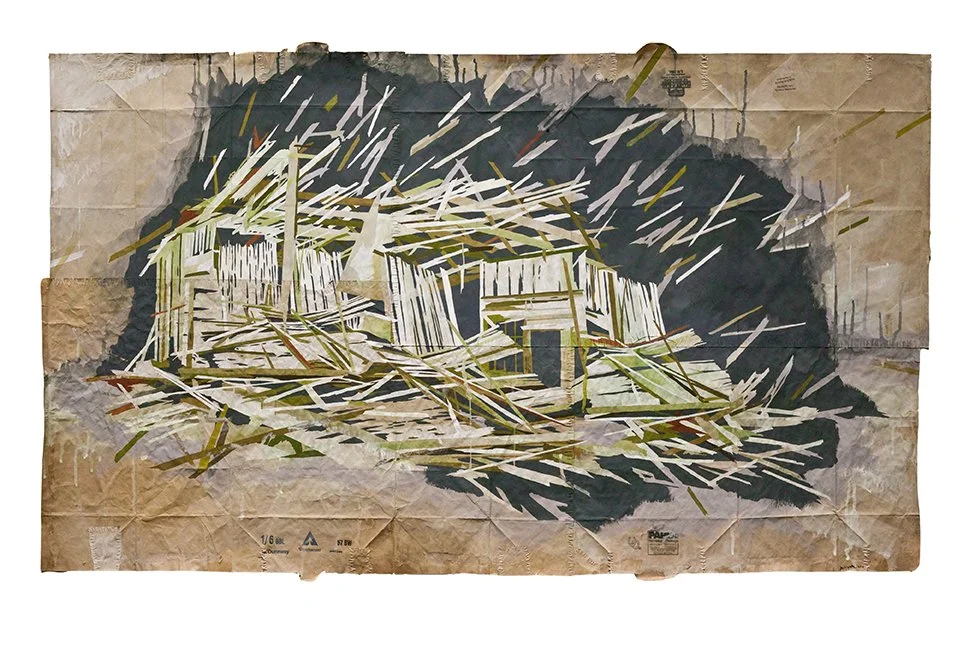 Ninth Ward (after Friedrich), 2010. Gouache and thread on archivally treated paper bags. 38 x 69.5 inches