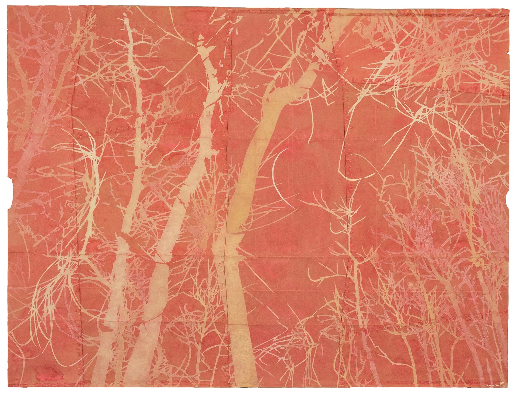 Coral and Clay, 2019. Gouache and thread on archivally treated paper bags. 38 x 50 inches