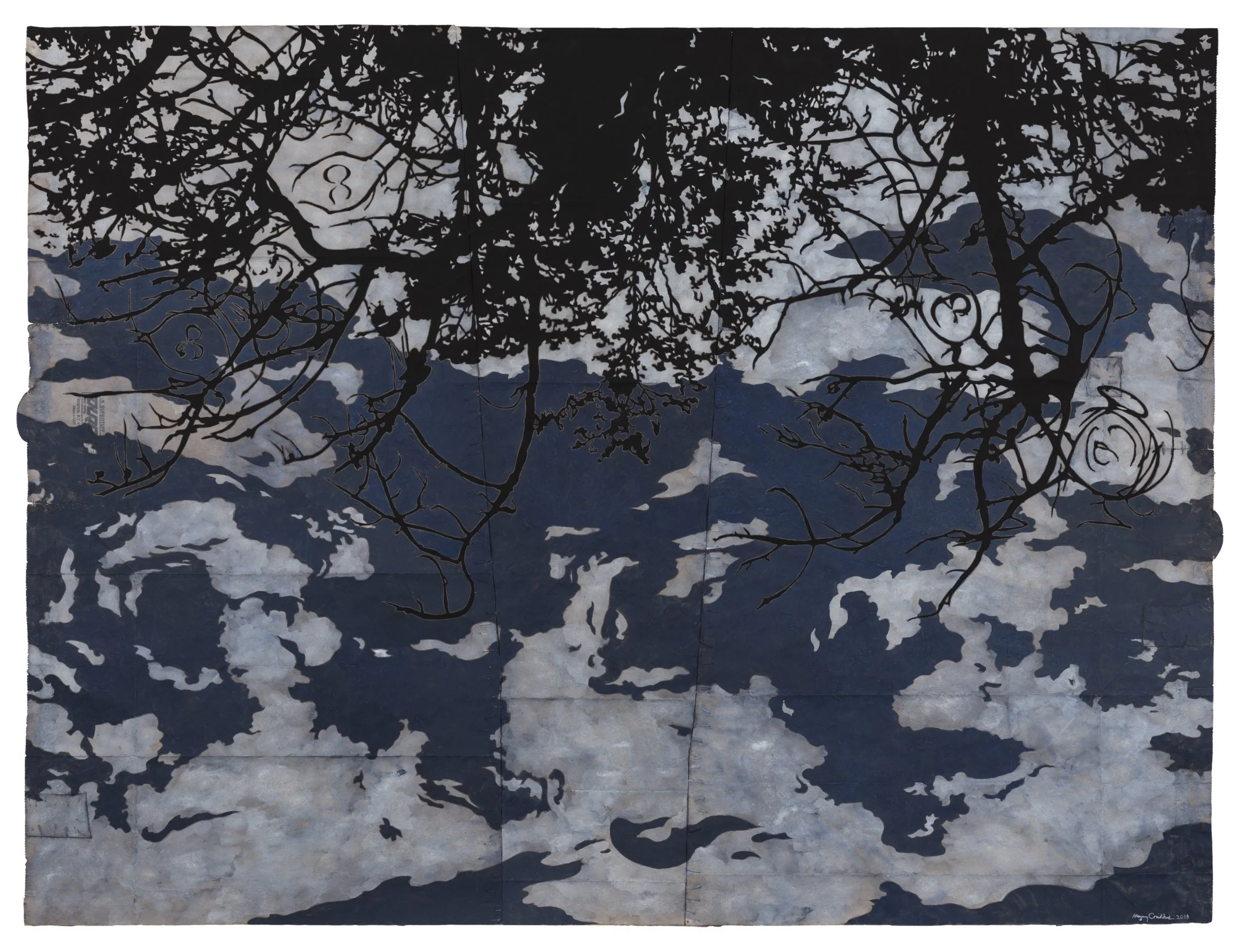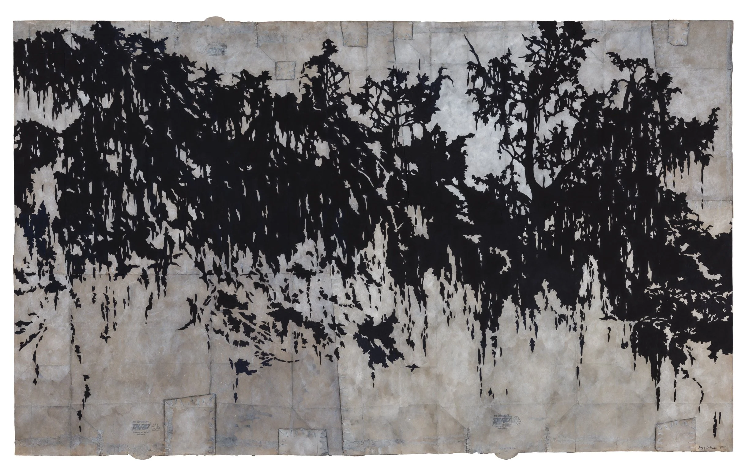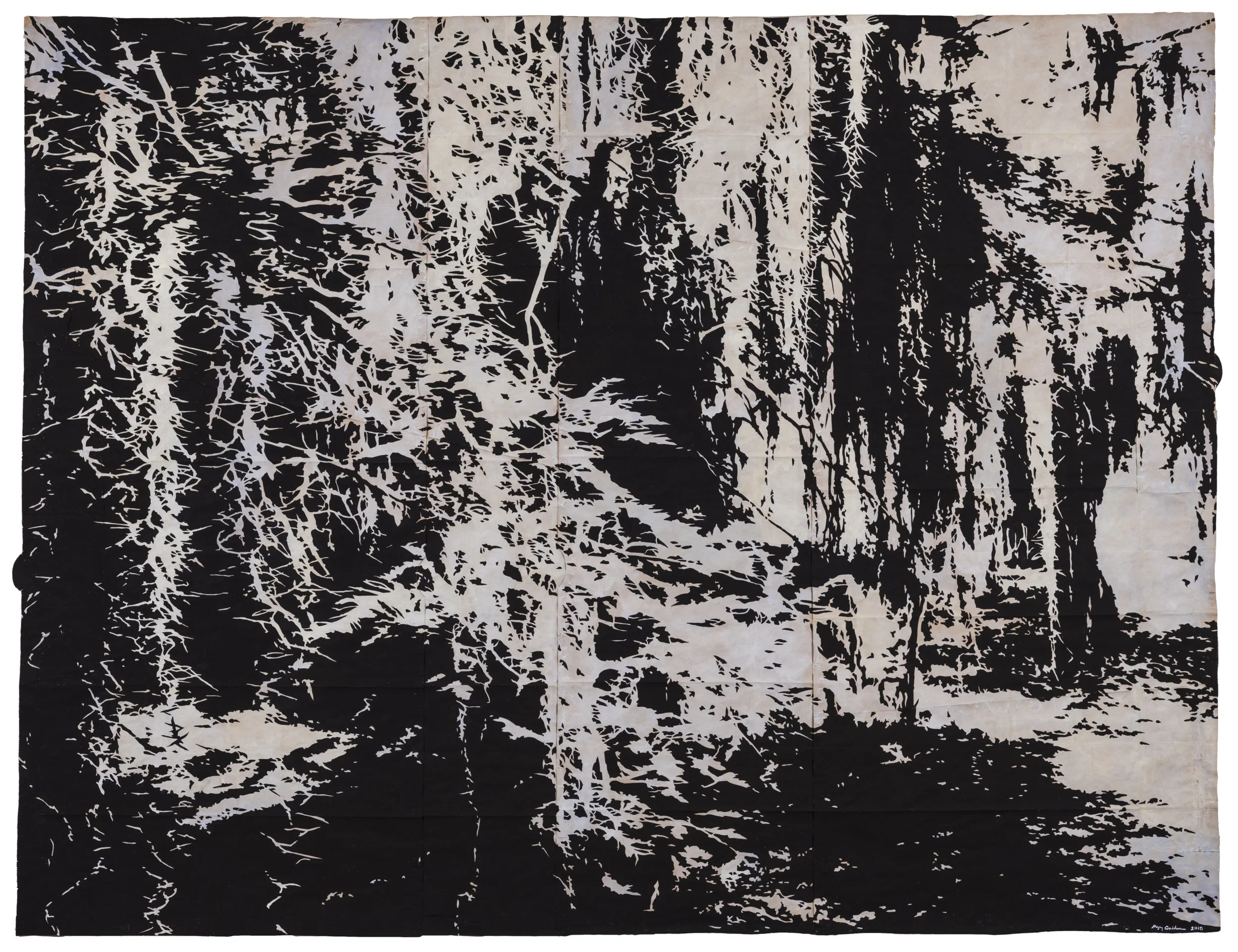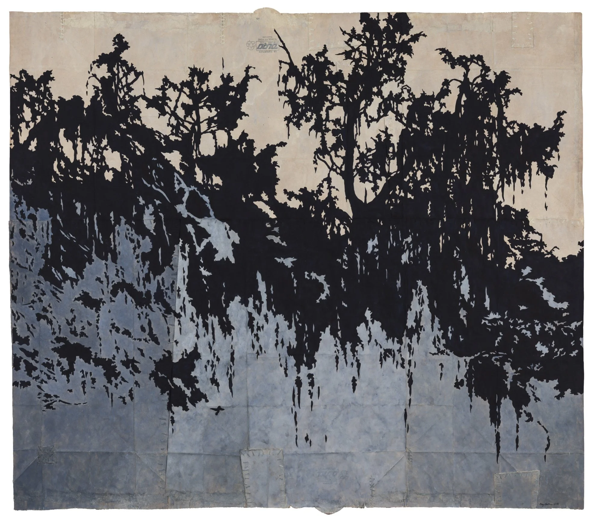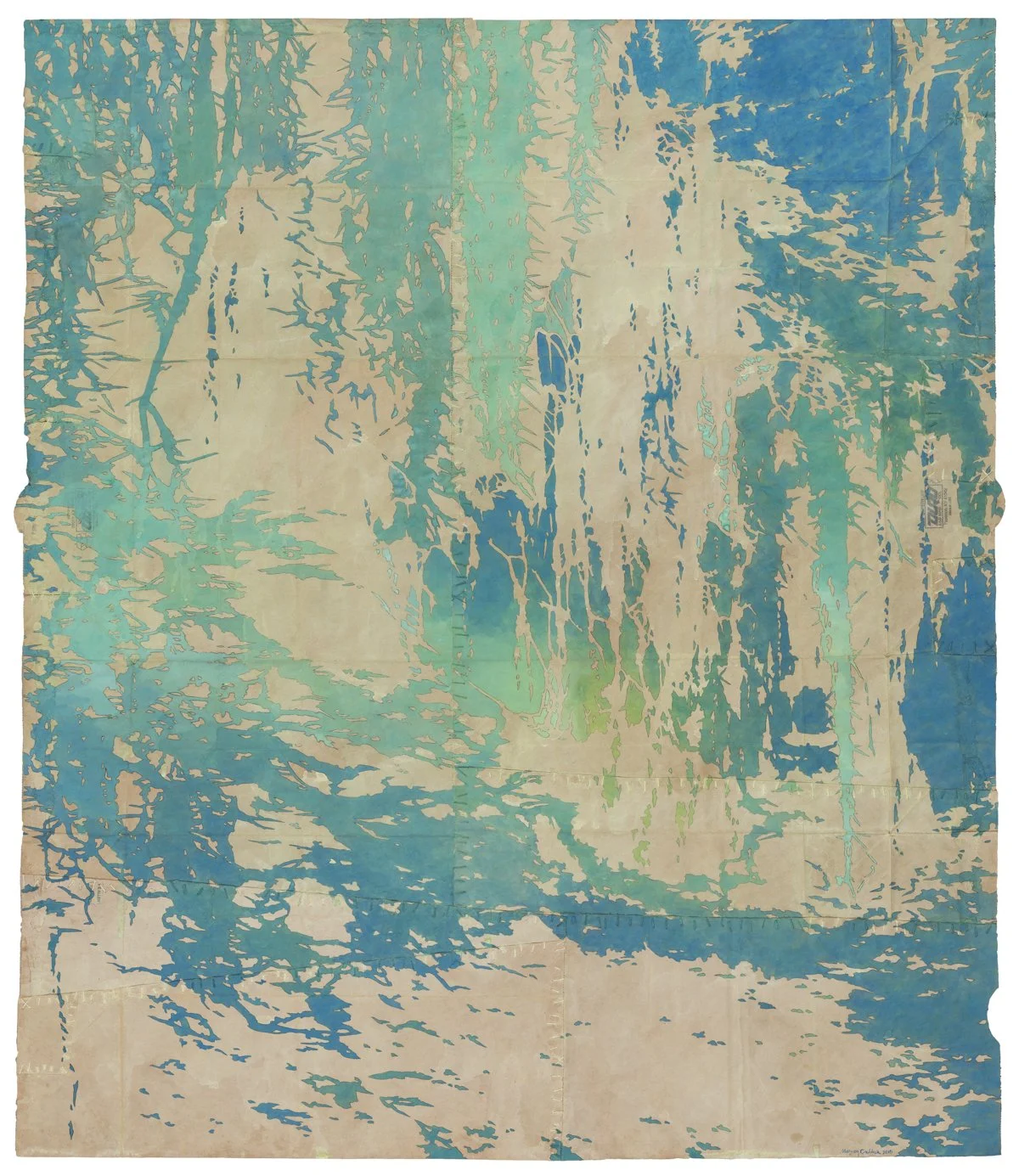 Arboreal Sea, 2020. Gouache and thread on archivally treated paper bags. 36 x 41.5 inches