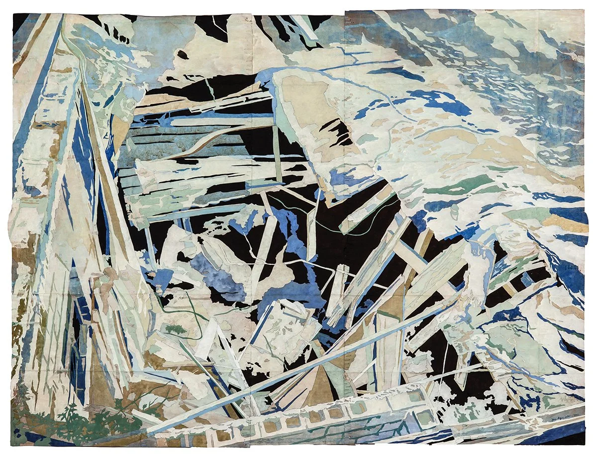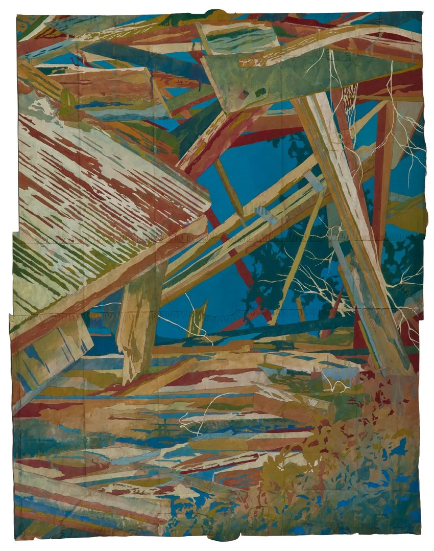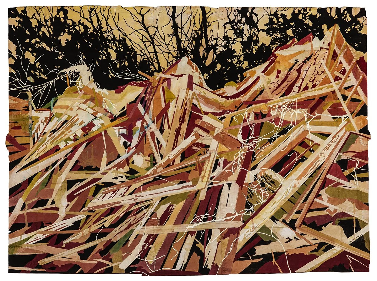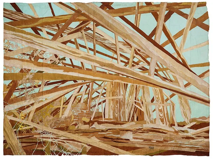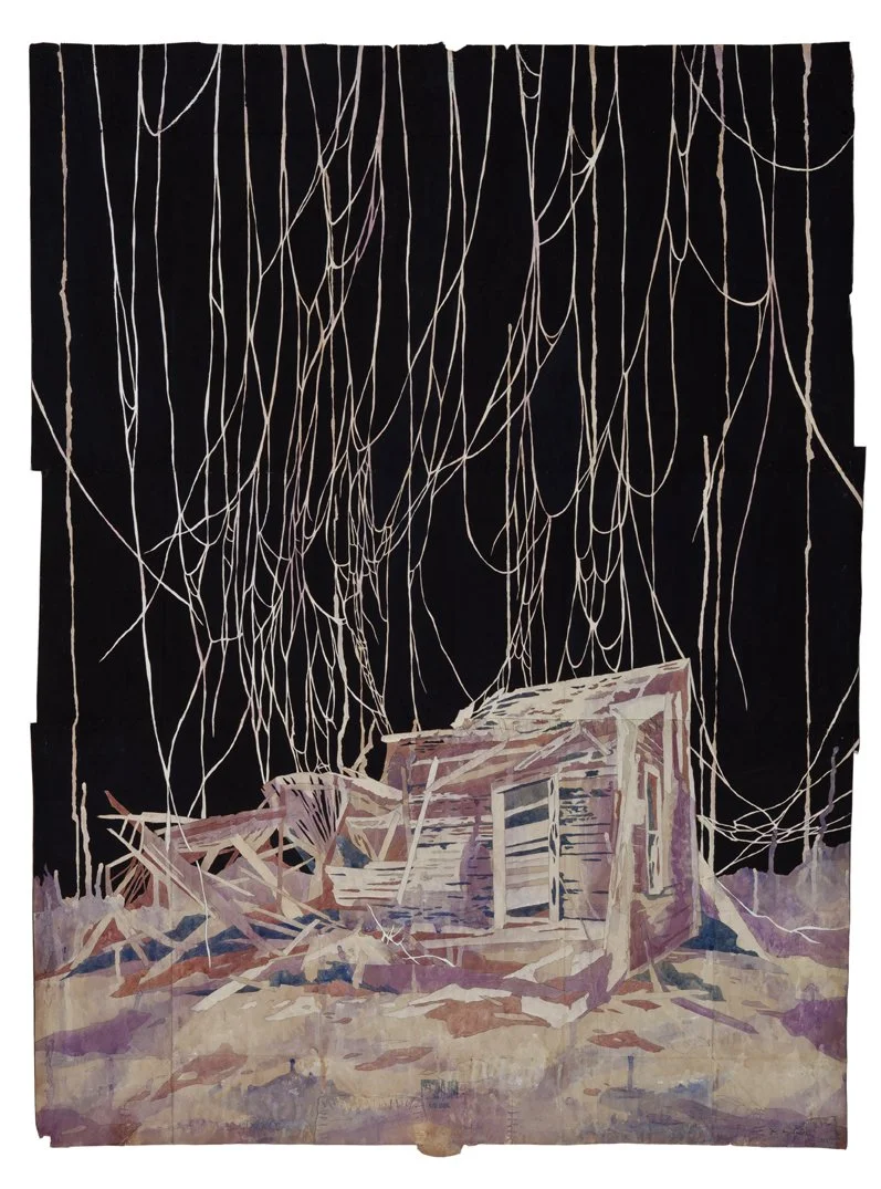Ruinenlust, 2012. Gouache and thread on archivally treated paper bags. 46.5 x 34.65 inches