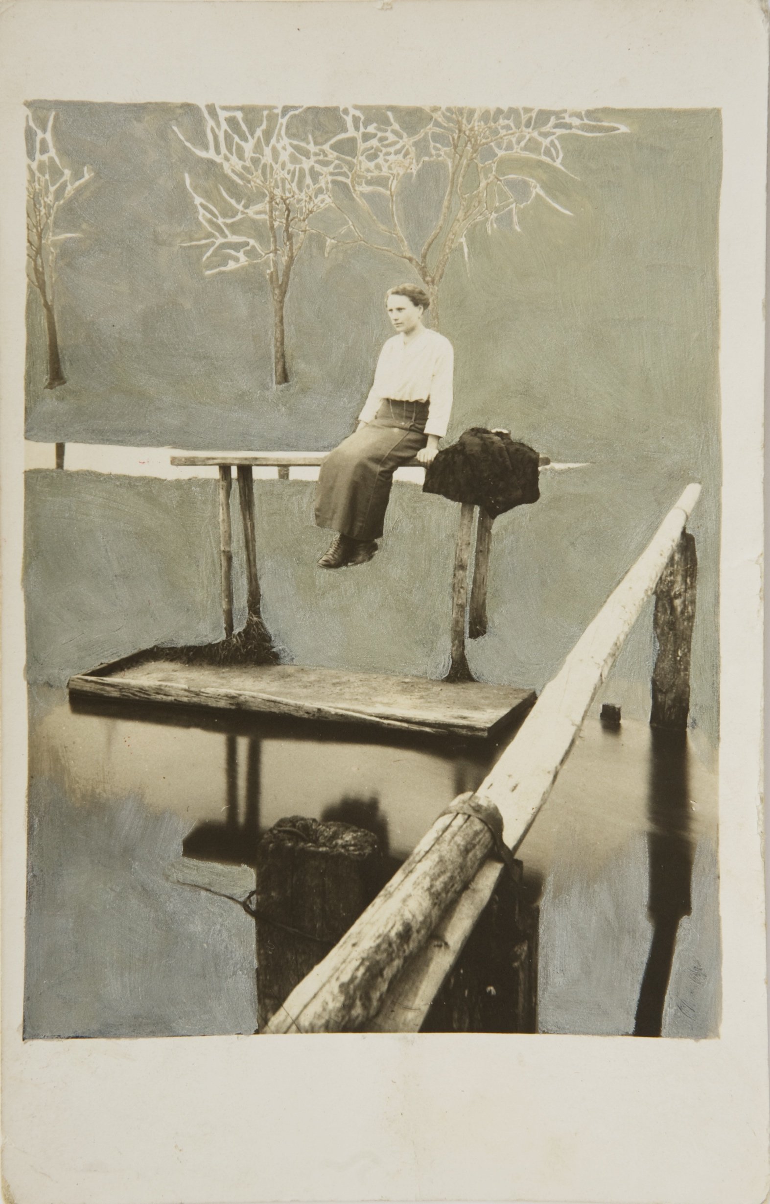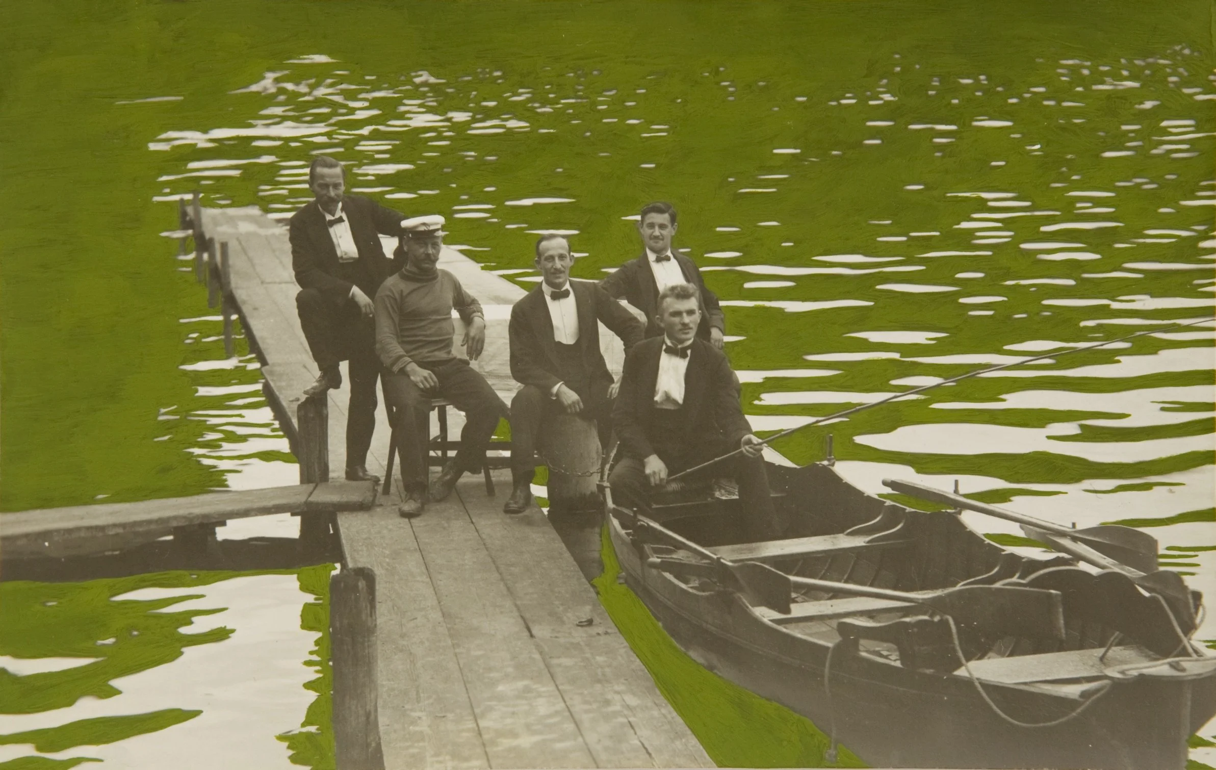 the past is a gliding sea, 2009. Gouache on vintage photograph. 3 x 5 inches