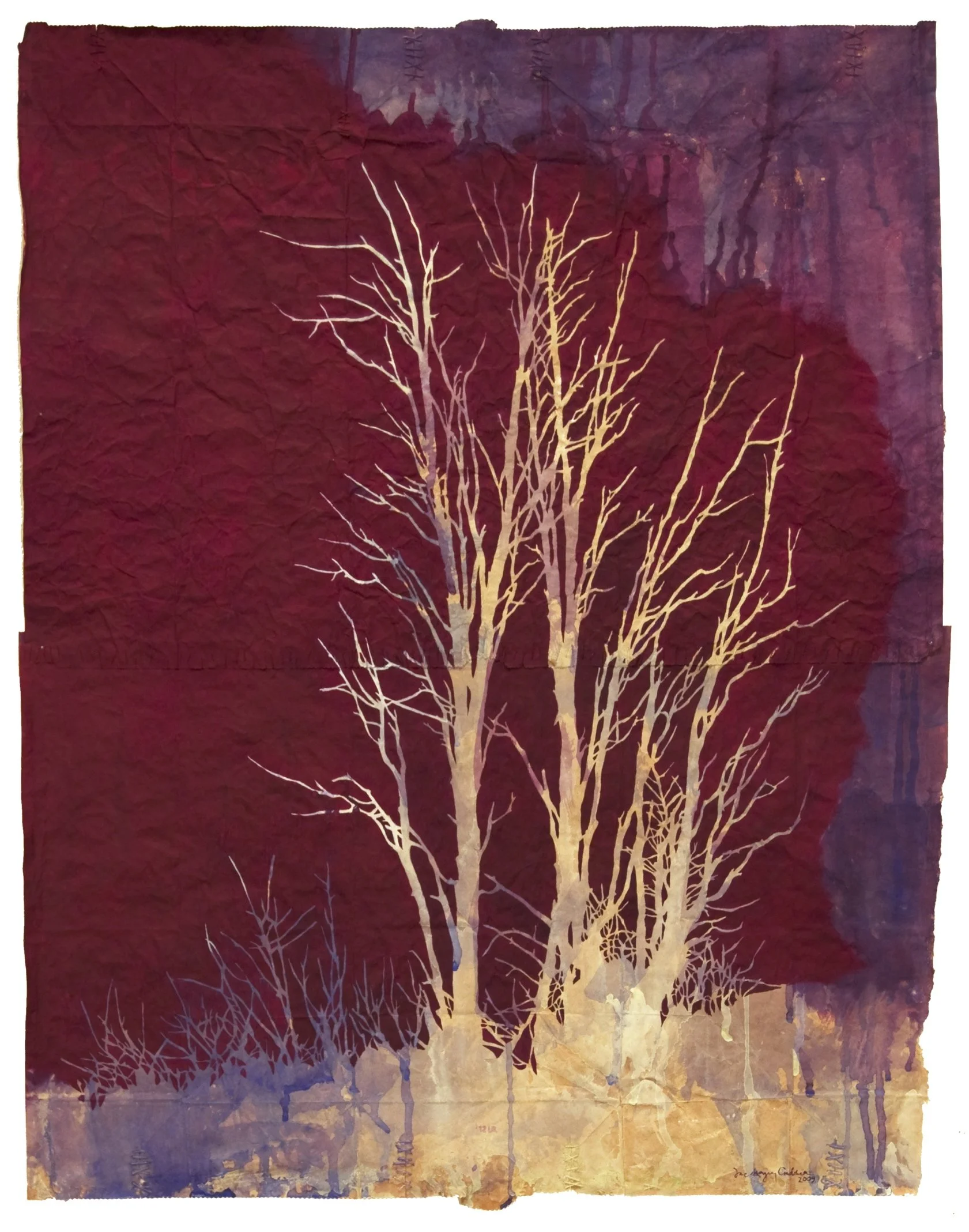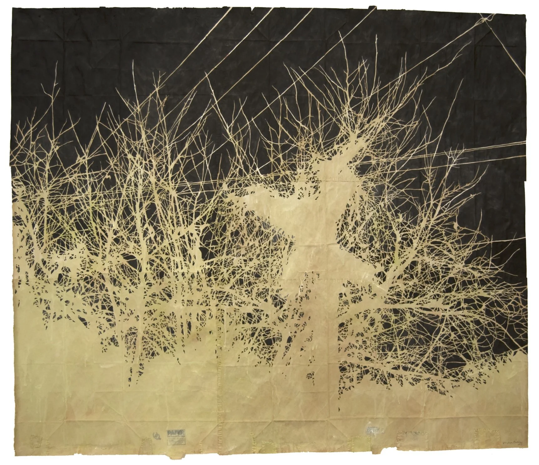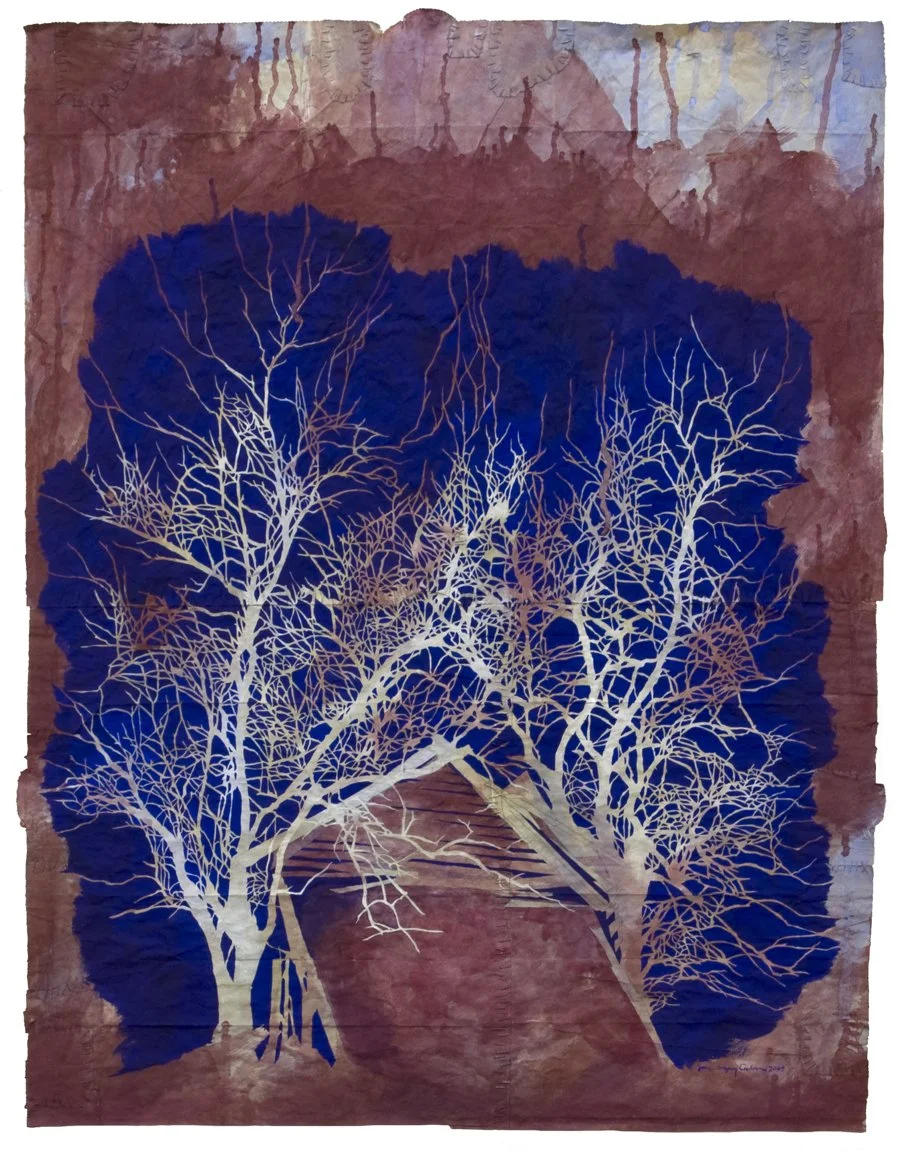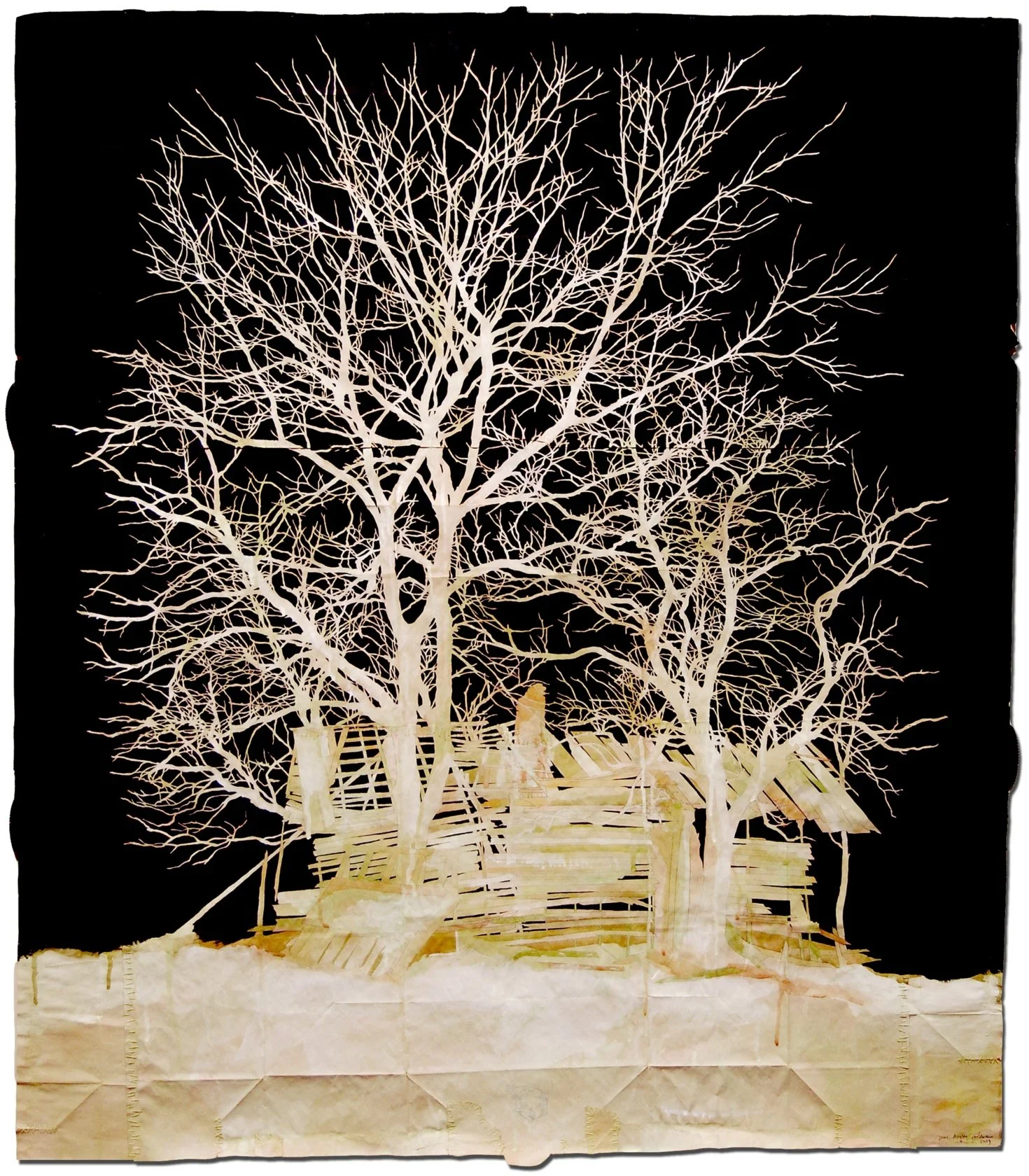 the hunger in the trees, 2009. Gouache and thread on archivally treated paper bags. 56 x 48 inches
